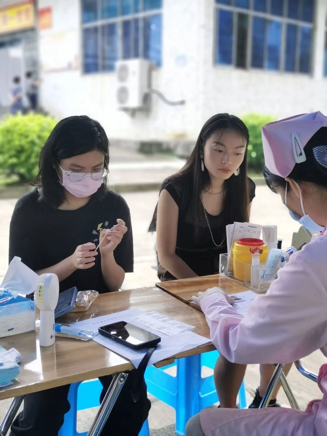 在献血的过程中,总有些温暖瞬间能够打动人心拉近彼此的距离,令人印象深刻的是献血志愿者在车下等待献血时,因排队等候时靠近树丛,总有蚊子胆大包天伸出了他们的“毒爪”在我们的志愿者脚上咬出几个红肿的大包,这时我们贴心的护士姐姐看到志愿者被咬,默默地找出几个驱蚊的香薰放在志愿者们的脚下,这一举动给当时排队的献血志愿者们心里带来了暖流。这何尝不是温暖热血的传递呢!