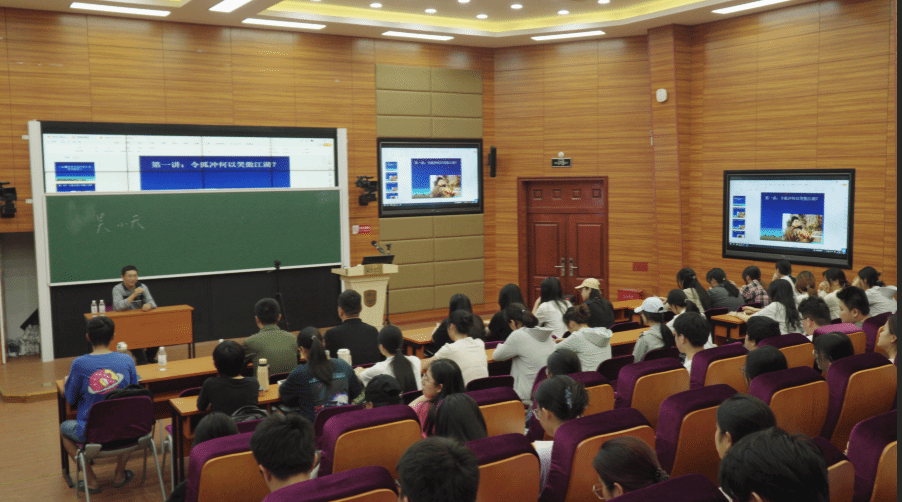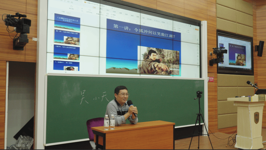 吴小天以金庸武侠小说等文学作品为切入口,结合当今大学生面临的现实问题与大家进行深入交流,从笑傲江湖的令狐冲到感动中国的江梦南,从“铁血丹心”的侠客情怀到“丹心耀南疆”的爱国奉献,启发同学们思考个人发展与家国命运的紧密关联。