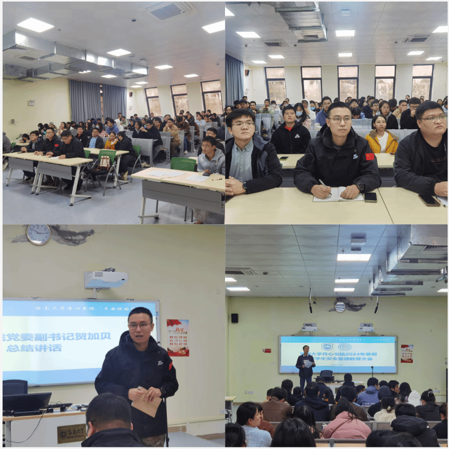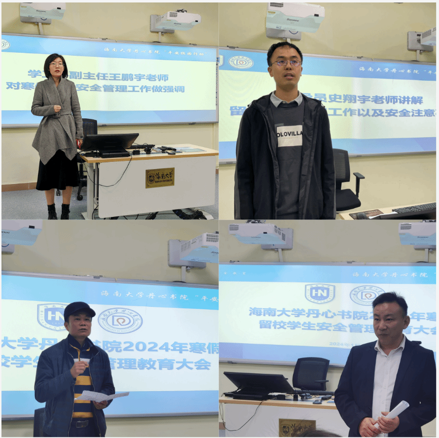 2024年1月23日,yl7703永利在儋州校区7103课室召开寒假留校学生安全管理教育大会。会议邀请了儋州校区管委会总务科刘强、陈海清老师和二食堂陈月生经理出席。书院党委副书记贺加贝、全体辅导员和100余名留校学生参会。会议由辅导员史翔宇主持。
